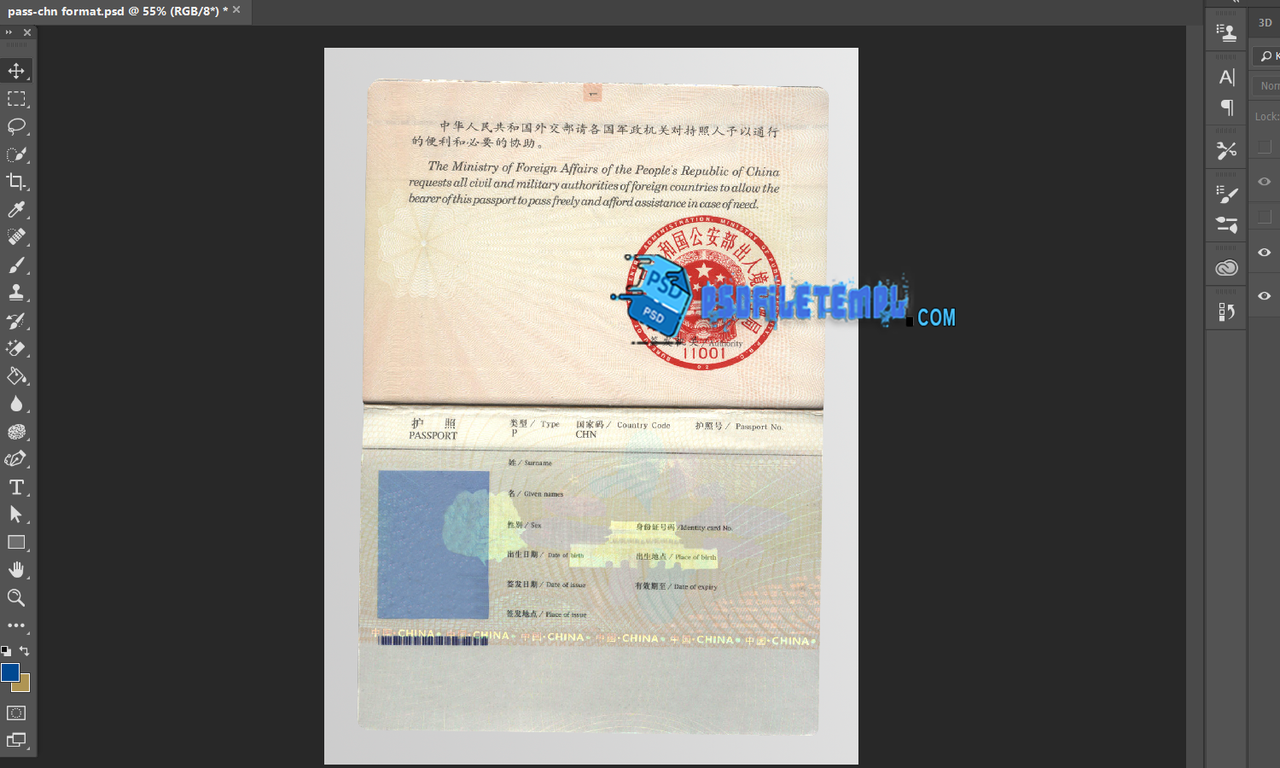 China Passport template psd. Fully editable photoshop template. High quality template. Easy to customize, Layer based, fonts included.