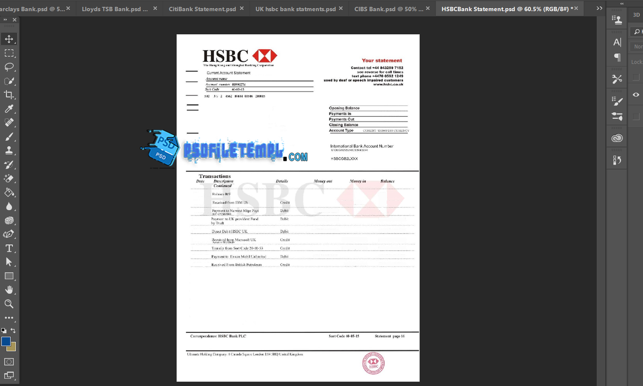 UK bank statement template. HSBC Holdings plc is a British multinational universal bank and financial services holding company. It is the second largest bank in Europe behind BNP Paribas, with total equity of US$206. 777 billion and assets of US$2.958 trillion as of December 2021. in England HSBC bank statement psd template whit abbreviations | fake psd template statement bank download free | verify account .