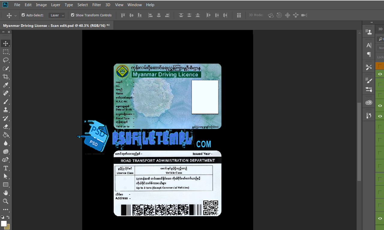 Myanmar driving license psd template format is a completely editable and free download, which is fully detailed in this article, then we have given you a video on how to download PSD files, be sure to watch.