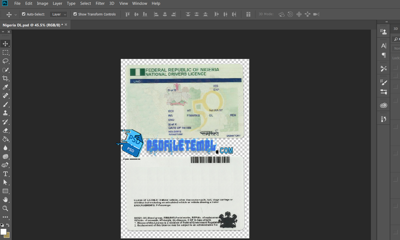 Nigeria editable driving license psd template free download fake