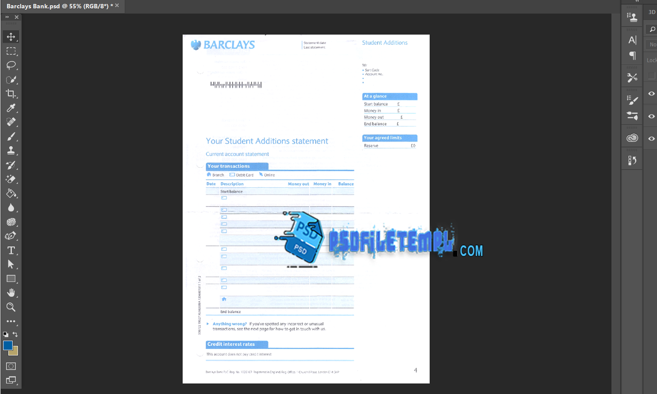 ENGLAND bank statement psd template. If you need a paper copy of a bank statement to use as proof of address or ID – such as for a mortgage or visa application – you can view, download and print it by heading to ‘Statements and documents’ in Online Banking or the Barclays app . in bank statement barclays statement bank of england psd template request | fake psd template statement bank download free . You can check your balance and transactions here, too.