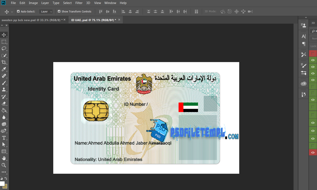 UAE fake Psd ID CARD template. Fully editable Photoshop template. High-quality template. Easy to customize, Layer based, fonts included. you can edit this template and put any name, address, license number, Id number, birth date, height, weight, expiration date, change photos, etc. This Photoshop template is a layer-based PSD file, and it’s easy to Editing. To change this photoshop template file you will need Photo editing software such as Adobe Photoshop No need to be an expert on editing software like Adobe Photoshop in the United Arab Emirates (UAE) ID CARD fake Psd Template free | full editable with all font. There is a fake ID card on the back and front of all ID cards and driver’s licenses that you can use.