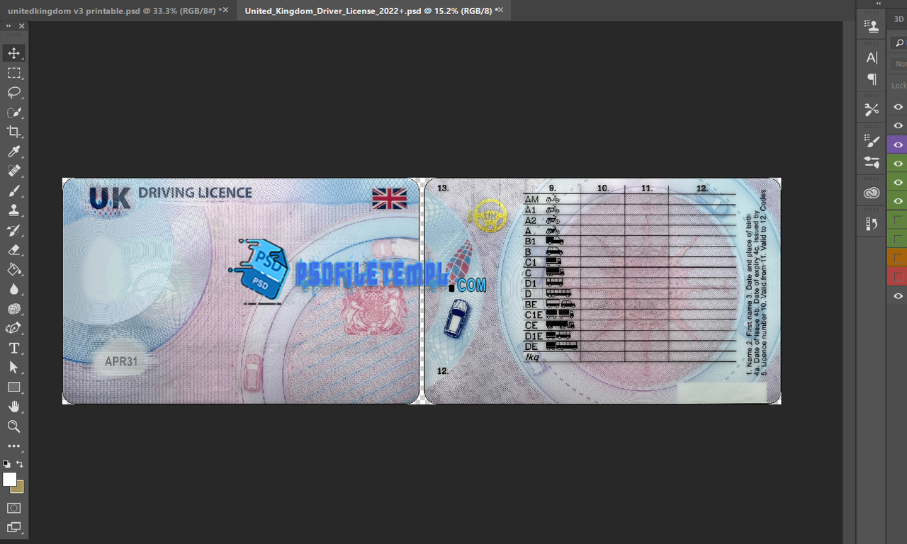 uk drivers license psd template free Instant file download after buying.