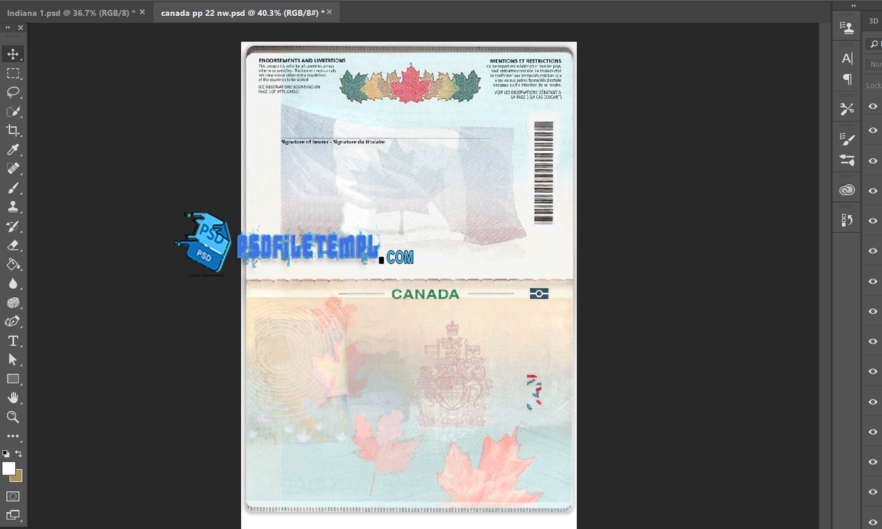 Canada Passport PSD Template new (photoshop) is best for Online Account verification .