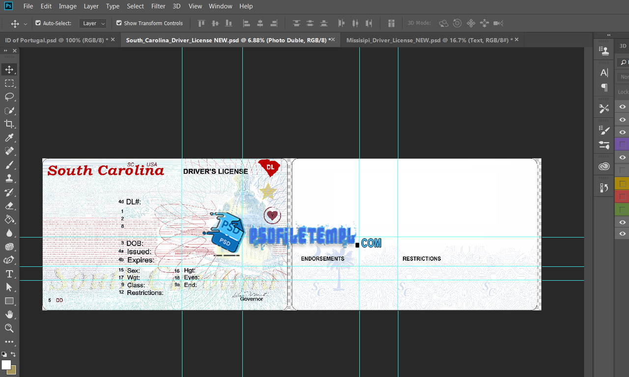 South Carolina driver license template. If you would like to apply for a South Carolina driver’s license or identification card, you must do so in person at the South Carolina Department of Motor Vehicles (DMV) office located at 3790 Leeds Avenue, North Charleston SC 29405. This is currently the only DMV location in the Charleston area that accepts international customers. in South Carolina driving license psd template & Safety Message | drivers license template psd free download | fake psd template | DL psd .