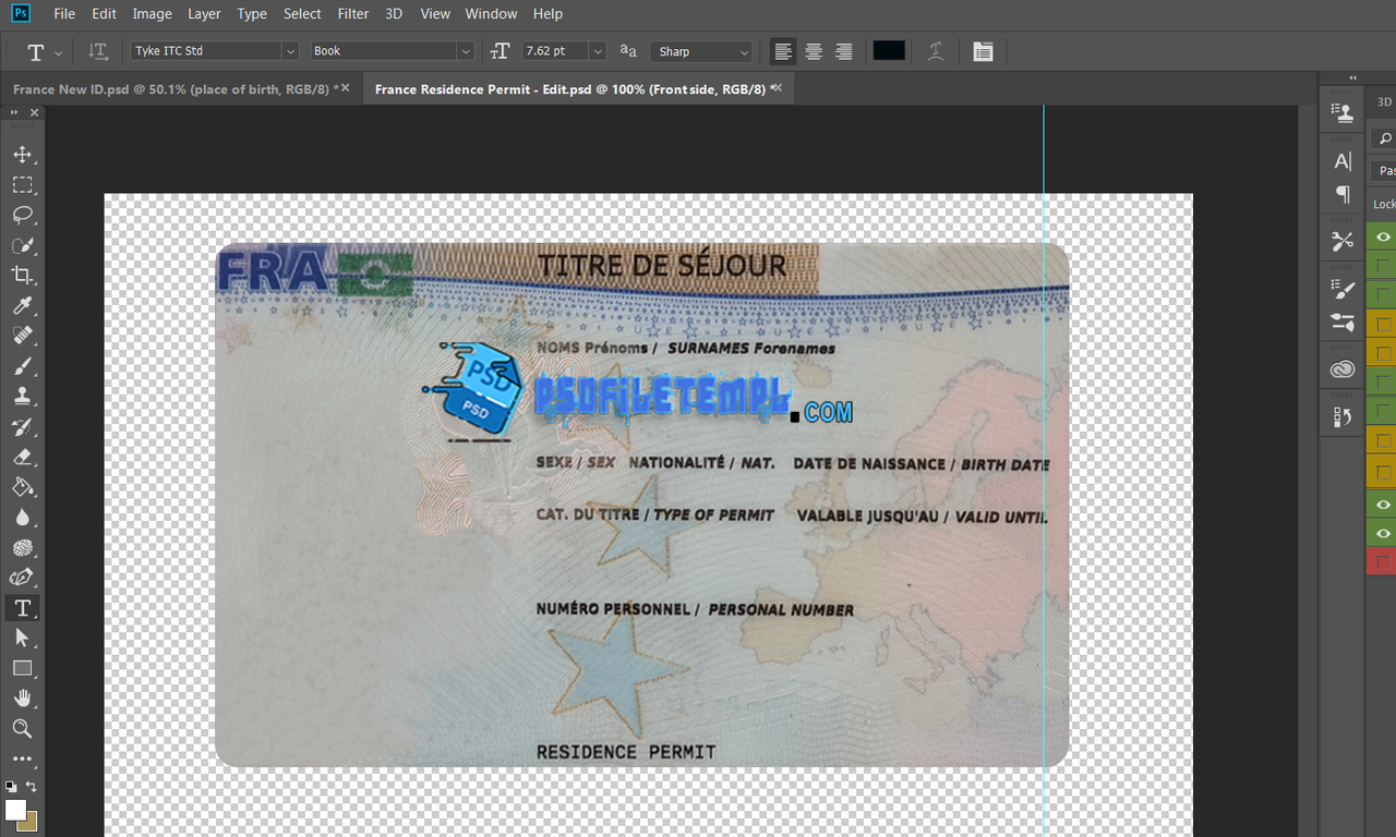 Temporary resident card (carte de séjour temporaire): valid for up to five years and can be renewed three times. in france fake resident permit card psd template | France residence card | Temporary residence permit French | french fake resident permit card psd template.