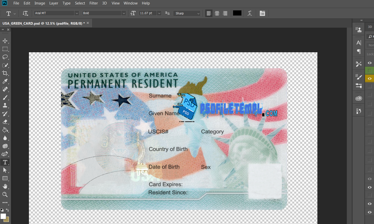 This Photoshop template is a layer-based PSD file and it is easy to edit it to change in Photoshop, that is, with a few clicks, you can edit US green card, and resident card psd template file free download in any way you like and easily edit the PSD template with Adobe Photoshop. edit If you don’t have Adobe Photoshop, you can edit it online. The essential software is Photopea. Also, for more information, subscribe to our Telegram channel, which we will put the link below, to find out about the videos and the latest news.