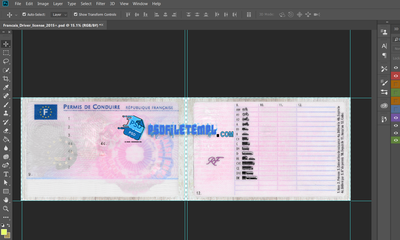 France driver license Psd Template. France Driving License psd template. Fully editable photoshop template.