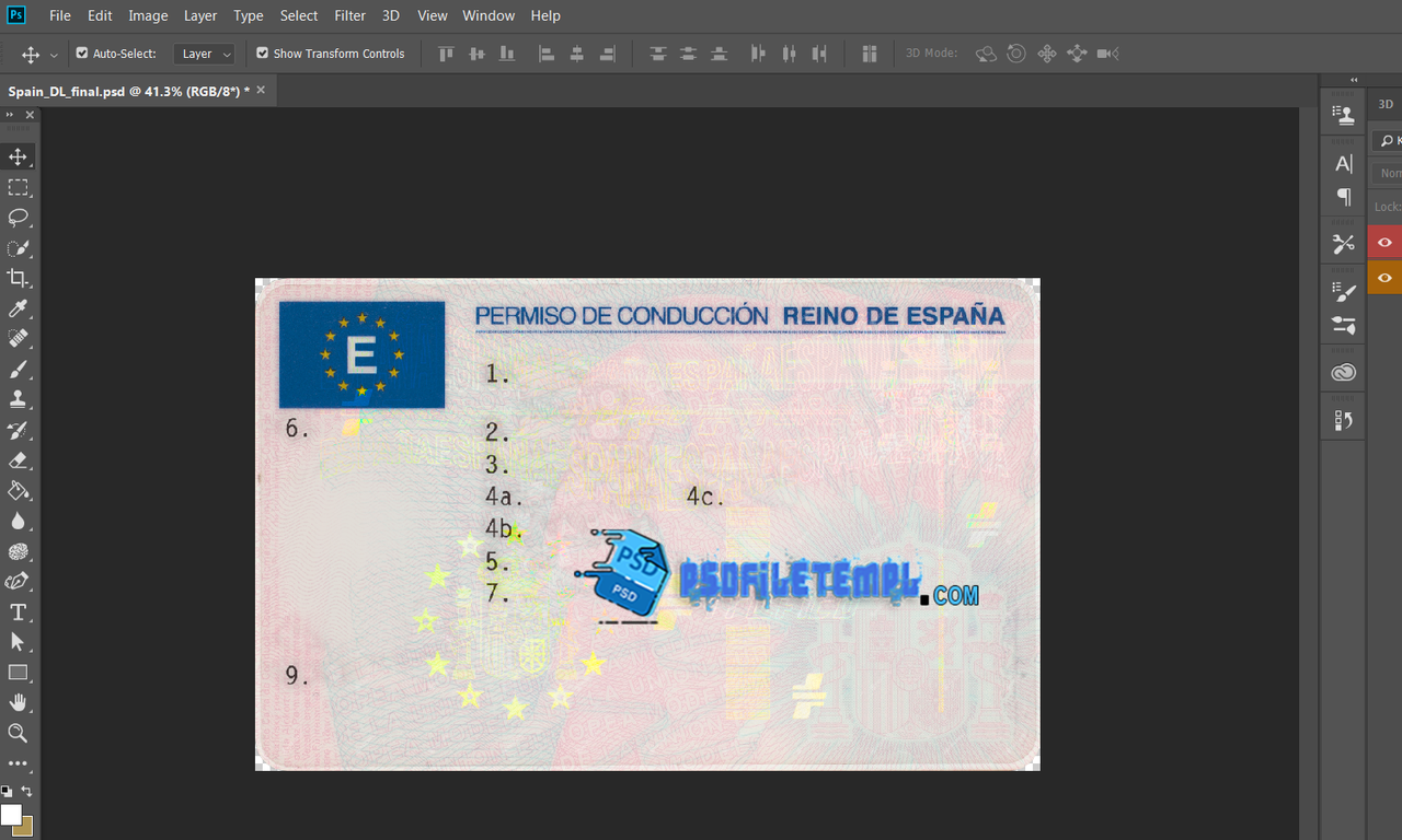 Spain driver license Psd Template. Spain Driving License psd template. Fully editable photoshop template.High quality template. Easy to customize, Layer based, fonts included.