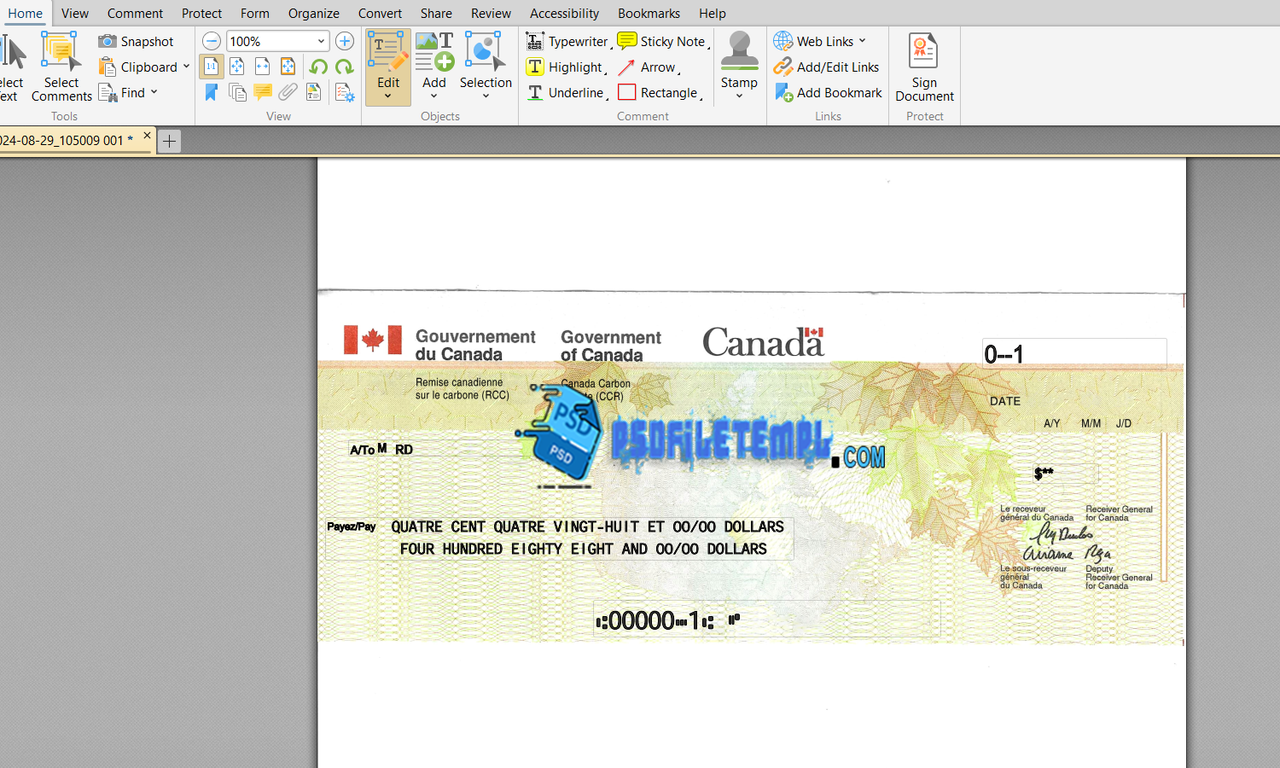fake canada checks free and editable, and you can make this cheque template on the psdlife website. with us to get more detailed information about the check template.