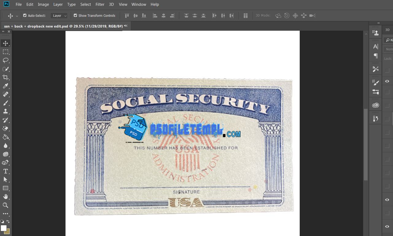 USA (SSN) Social Security Number psd Editable Template front and back free