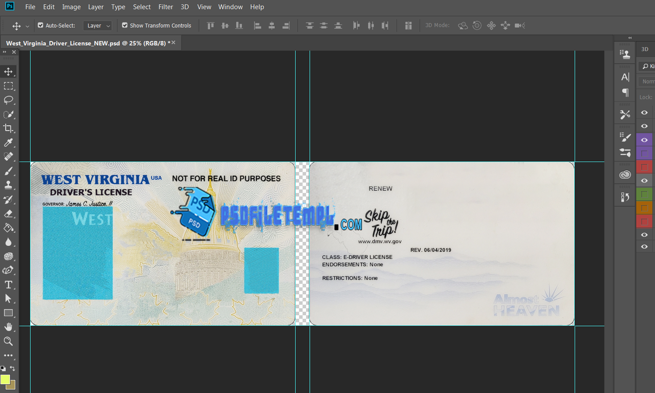 West Virginia driver licence psd Template (photoshop)