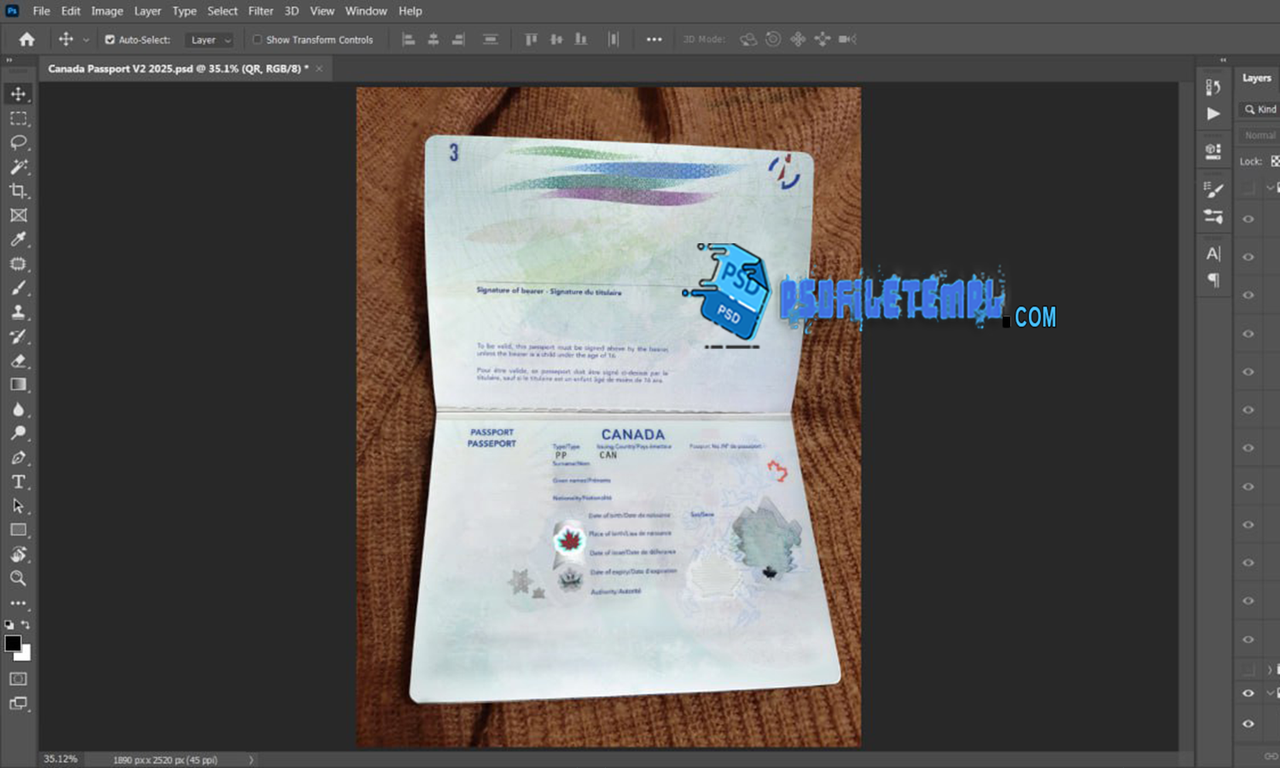 Canada Passport Template Psd