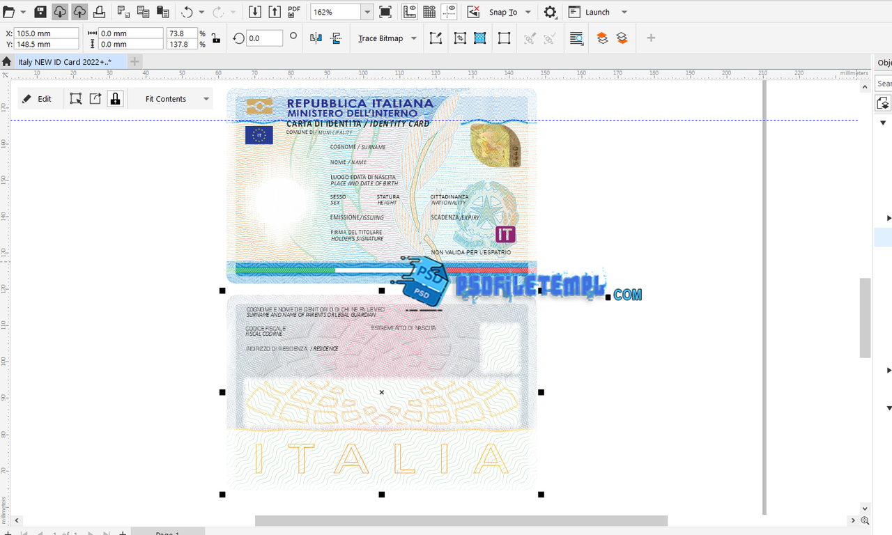Accurate Italy Electronic ID Card Layout (2022 Version)